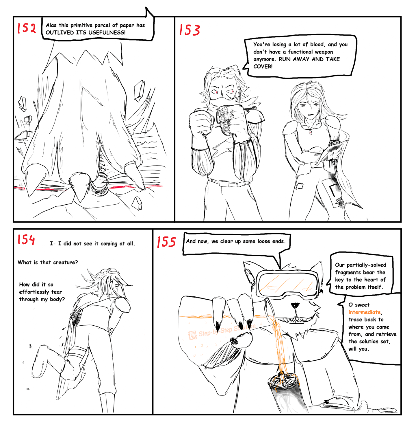 Laplancelot informs the General about his mission's status. Z finally catches up with the rest of his party. Meanwhile the Challenger intends on going all in to defeat General Solutions once and for all (of course while destroying everything in-between as always) to satiate his shattered ego using his new tool: Wolfram Alpha. Will our intrepid heroes out-maneuver the infamous "Computational Intelligence"? Find out in this chapter.