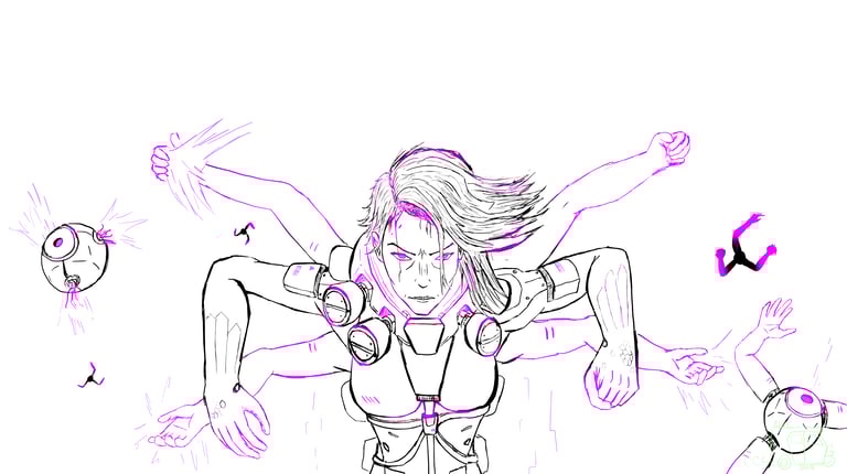 As evidenced, my artstyle for this sample involved using a monochromatic approach where I incorporate a single colour for effects and highlights (This is similar to my comic illustration except with the added specular tint effect).